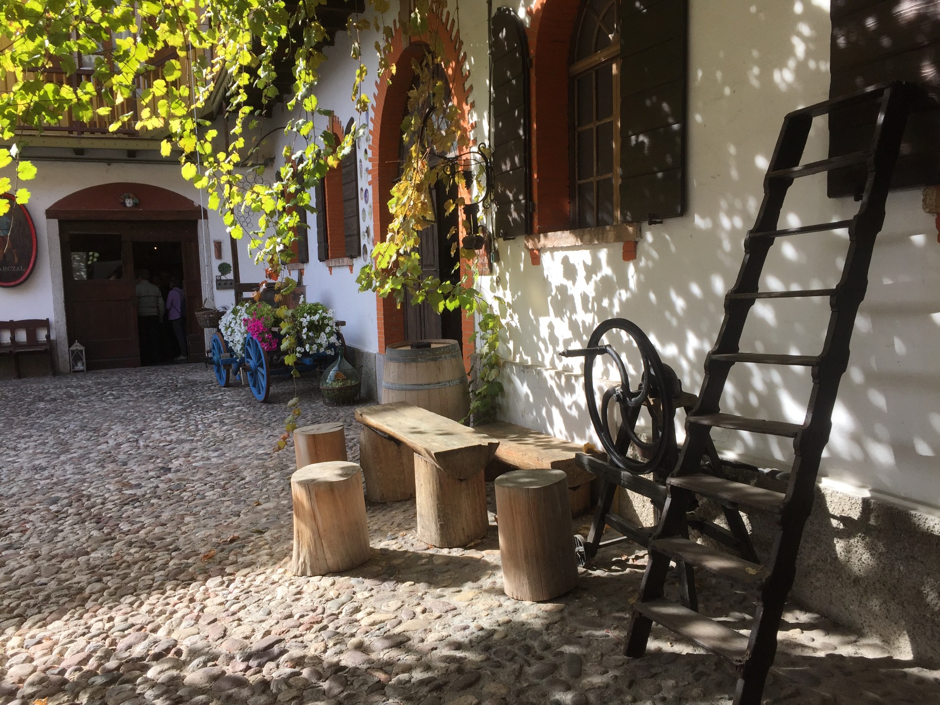 Der Spaziergang geht weiter durch die mittelalterlichen Gassen mit ihren Geschäften, die Webereien, baskische Wäsche, Espadrilles, Töpfereien und andere lokale Spezialitäten anbieten, gemütliche Cafés laden zum verweilen ein.